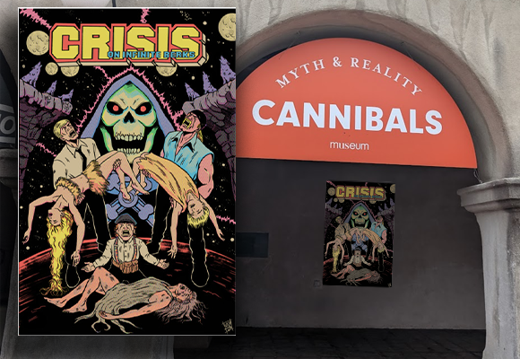 Coming in at a solid 20 by 30 inches, our Crisis On Infinite Berks poster is exactly what you need to lure people into what is obviously a trap set by cannibals. They won’t be able to resist the incredible action going on and then bam, you’ve got dinner in the bag.