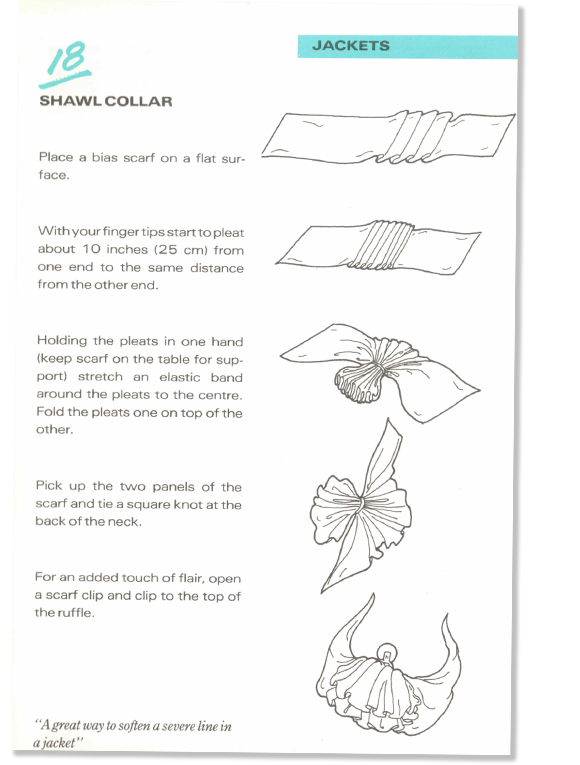Julie Claire was young and flirty. A scarf novice might pick up this cheap slop with only 50 easy ways to tie a scarf, but Lorraine offers way more than 50, and most of them are incredibly complicated.