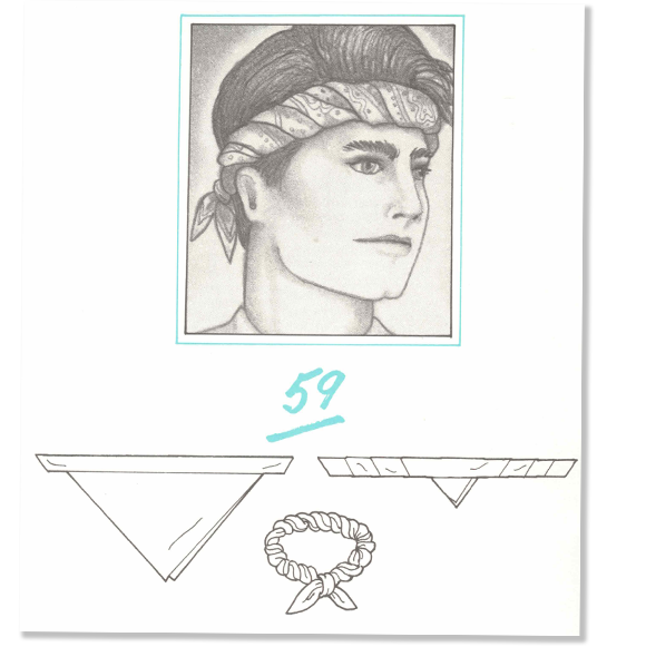 Even the male models share this expression, and yes, Living With Scarves does include a section on man scarves and it has every possible man scarf variation. You’ve got evil karate villain headband scarves, complete with an evil jock chin model.