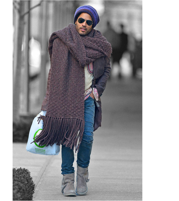 If you’re thinking, “wow, I guess scarves really had their era at one point, but it’s not like anyone cares that much about scarves today,” think again, you cold-necked loser. Everyone has scarf opinions but you! Everyone is talking about scarves. Have you seen the size of Lenny Kravitz’s scarf? It’s the final boss of man scarves. GQ wrote an article called “Your Scarf Should Be Way Longer Than You Think” after this scarf dropped. The scarf journey will never end.