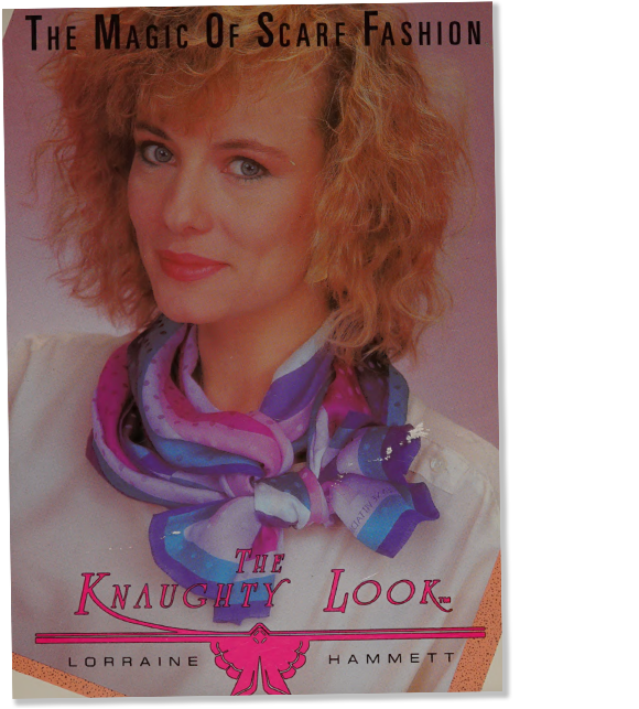 Iconic scarf mogul Lorraine Hammett’s legacy has been erased from history. She traveled not just her home country of Canada, but also The United States, and Australia, giving scarf clinics. She had a team of Knaughty Ladies qualified scarf consultants in the fashion accessories area of many Canadian department stores. Name a scarf and this woman has scarfed it. She even had scarf rivals, some less notable than others. Bobbie Jean Thompson, for example, was a scarf one hit wonder. Scarf Tying Magic was flashy but quickly forgotten by your average scarf connoisseur. Critics said she looks like she murdered her first husband with a scarf, and they found that glamorous, but off-putting.