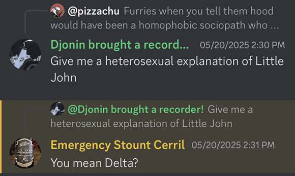 Or just rag on Delta, the Hot Dog Discordās himbo-in-residence.