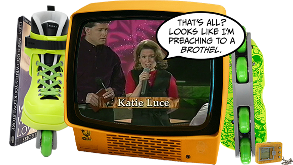 Katie’s a bit less teleprompter-y than Ron. I don’t know if that speaks to improv or a modicum of ability, but the Luces aren’t the first mixed talent couple I’ve found preaching. Divine womanhood means dragging a hack across the finish line.