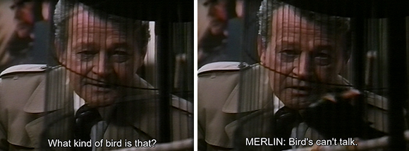 Hey, interrogation subjects: when pressed, just say an unrelated thing! Or, if all else fails, have your bird outsmart the guy for ya.