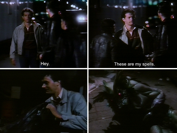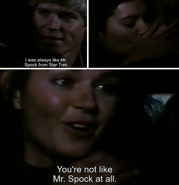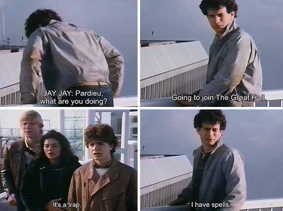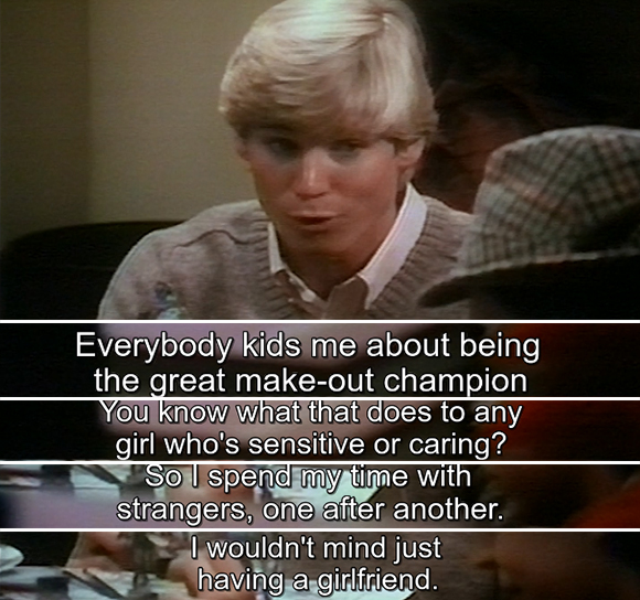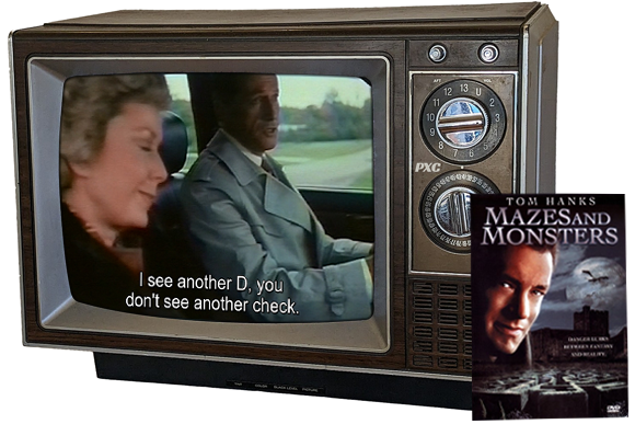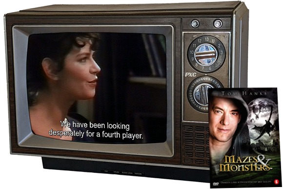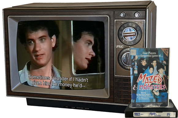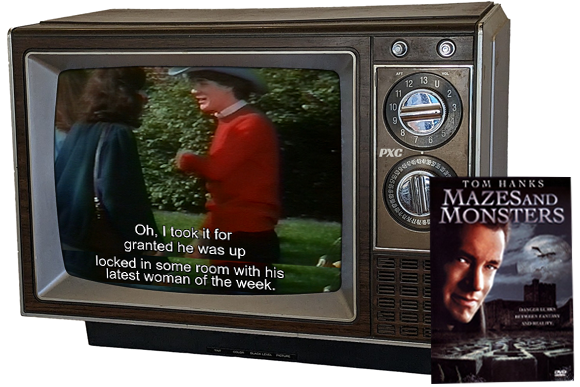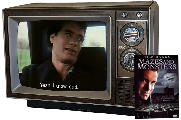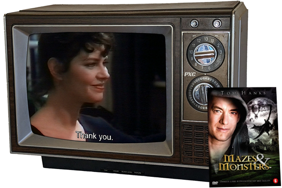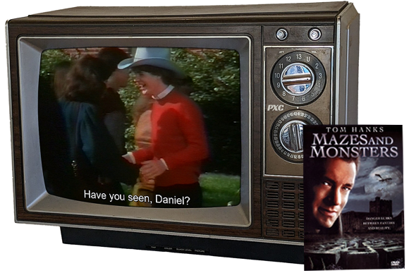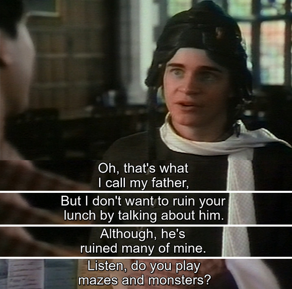That description is so unlike what Dungeons & Dragons actually entails that it caused me to briefly wonder if I had actually stumbled upon a movie about the dangers of Chutes & Ladders L.A.R.P.ing. But no, yes, he means Dungeons & Dragons, even though we will never see a die rolled in the whole film. The only thing Mazes & Monsters as depicted has in common with real Dungeons & Dragons is the concept of Critical Failure.