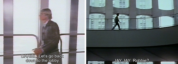 At this point, the film takes on the disjointed pacing of a motorist unsure if theyâre about to pass their exit or not. It truly feels like they came up short in the cut, so to fill in the gap they play out the worldâs most tedious chase sequence. As the score struggles to figure out how much danger itâs supposed to be indicating, a laborious game of cat-and-mouse ensuesâŚfirst they head to the Observation Deck but donât see MiRoHan, who has just now wandered into the lobby.