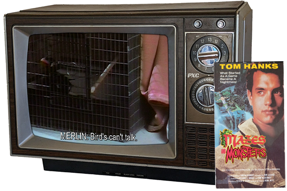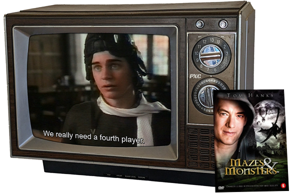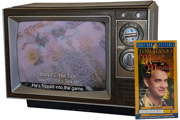 But donât worry! The Producers who made this movie because they are nominally so concerned about the mental health of young people didnât find the suicidal ideation thread interesting enough to return to. It is, in fact, the Tom Hanks character who succumbs to the evil of TTRPGs and goes nuts, not Jay Jay. Jay Jay just idly tells his pet bird he wants to kill himself in the local caves, then conspires to get his friends to L.A.R.P. there. To do so, Freelik seems to intentionally take a dive at their next Mazes & Monsters play session.