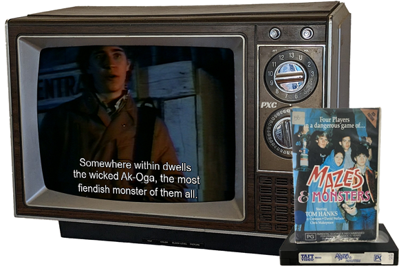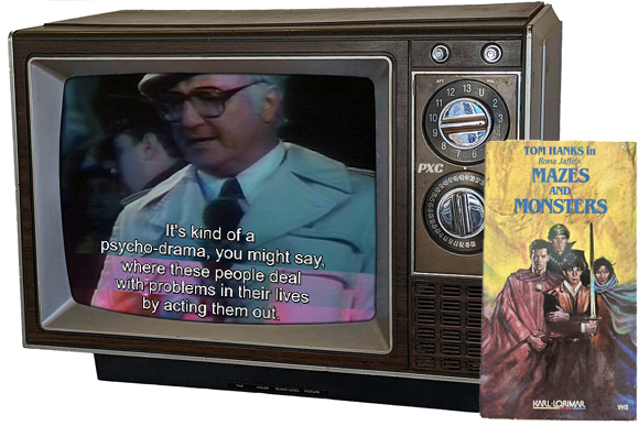 Both the novel and film concern a game of âMazes & Monstersâ gone awry. How awry? Theyâre sending rescue dudes with scuba tanks and hardhats down holes in the very Earth, thatâs how! What IS this horrid game, that could have resulted in such a dire, subterranean, and unspecified tragedy? Iâll let Kronkite Fedora explain.