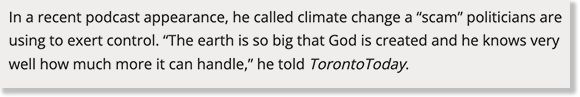Oh, sorry, that’s about oil drilling, boo. Apparently, Mazri is a huge climate change denier. In his opinion climate change can’t be real because God wouldn’t let us drill too much oil, or something.