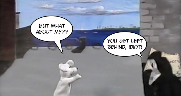 Sprocket and Bubbs move in to arrest the rat, actually reading him his rights this time but pausing between each one to explain how they donât really apply to junkies. None of these arrests will hold up in puppet court. This rat is walking free tomorrow and Sprocket and Bubbs are going to be punished with paid vacations and secret high fives.