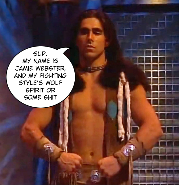 They head out to Tommy’s adopted Native American grandparents’ place to hide out and train for the inevitable clash with Brakus and I’m sorry what the fuck? Did Tommy’s parents ditch him after his brother’s death? Walter is just as confused, but Alex pats him on the head, promising to explain it later. He never does, and why should he? This was post Dances with Wolves, when the nobility of Native American culture became just another bullet point on delusional martial artists lore tabs.