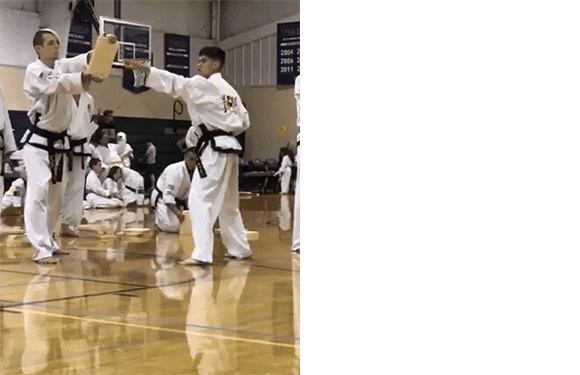 They must break bricks for the tie breaker, and since bricks aren’t a race, Travis loses. Alex is next, and he karates the absolute shit out of his opponent. At least until his opponent remembers the worst kept secret in competitive martial arts and axe kicks Alex’s shoulder. It should be noted here how devastating this kick was. His arm is so mangled Alex can’t even stand on his own. He needs help hobbling off the mats and even then he keeps plopping back onto his ass like a marionette getting its strings clipped. It’s embarrassingly over the top and the reason why is obvious. It makes Alex cry. A lot. This is how he enters his final form. After his coaches tape him up and calm him down, he steps back onto the mat with his face positively glistening. He literally kicks his opponent off the platform and wins his match, then gets carried off by his team to hopefully have his threat level assessed.