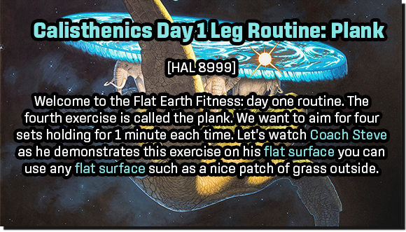 Flat Earth Fitness stars the stock AI voice. You know the one. Beneath all the skipped science classes and pills, Coach Steveās sense of humor fights for air. The robot repeats āflat surfaceā twice per sub-minute video. Including wobbly planks, lunges, squats, and some naps Coach Steve calls calisthenics. You can blame branding, guilt, propaganda, LLMs, my clown bias, or the crib death of reality. I think Coach Steveās last brain cell is fucking around. Say Iām wrong, and Iāll start The Coach Steve Punchline Review.