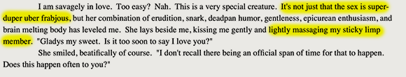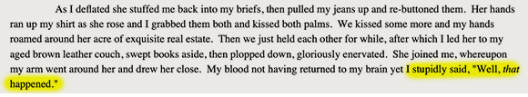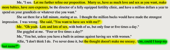 Lest you think that our protagonist is motivated solely by the carnal pursuits, Mitchell is quick to point out that he is rather brainy as well.