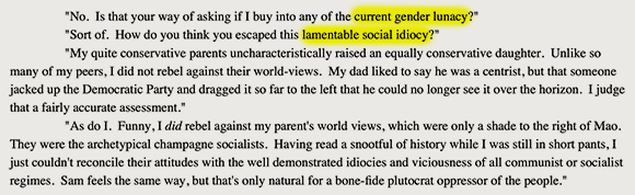 And recall that Jack is a conservative man who despises the “gender lunacy” and “social idiocy” of our deeply progressive moment.