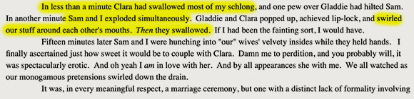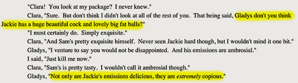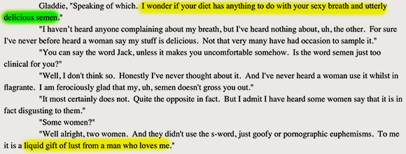 Unrealistic? Absurd? Contemptuous? Certainly the woke literary establishment would have you believe as much. But consider that in addition to her voracious hunger for seminal fluids, Gladys has another, quite intellectual hunger.