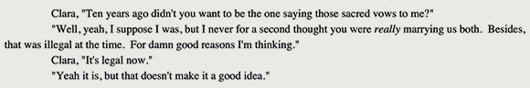 Jack demurs. He’s attracted to Clara, no doubt, but demonstrates the courage of his convictions in his reluctance to act on those feelings. The law does not determine what is just.