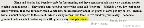 That’s right: Mark Mitchell has been an adherent of the carnivore diet for at least seven years. And if he’s seen the health benefits of such a lifestyle, then I can only assume that like his protagonist, he’s also become an impossibly wealthy, pussy-crushing ubermensch rather than a lonely old man writing 9 Chickweed Lane fanfiction on his Blogspot. I salute him and his dozens of beef-powered children.