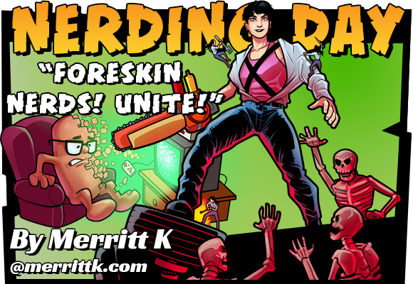 It’s been a calendar year since we met Foreskin Man. It feels longer, though, doesn’t it? Like the protective, elastic skin that Dr. Mutilator yearns to tear from the vulnerable bodies of newborn boys, time has stretched out over the shaft of reality over these last twelve months. Let’s slow jerk a little while the world burns.