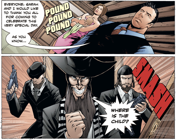 Cosmo is “hypnotized by the decadence of the Ancient world” before moving on to meet the Hooded Hero and Tip Tamer. Already I’m wondering if we really needed this many ambulatory cock heroes. I get that they’re riffing on the Justice League, but I’m not sure the concept of foreskin needed six different characters to exemplify all of its qualities. Instead of developing a half-dozen weak gestures at Marvel riffs that look like Funko Pops from a timeline where sex stores followed the same business model as GameStop and then putting the word “Shield” in two of their names, you could have just had one well-developed guy. Have Cosmo meet The Cut Avenger. Let them explore each others’ bodies a little. I’m available, ONE Condoms.