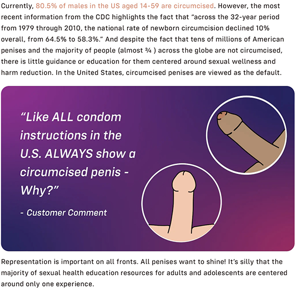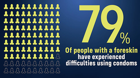 But there’s more, in a post on the ONE Condoms blog called “Closing the Foreskin Gap.” 79% of people with a foreskin have “experienced difficulties” using condoms! Wow, that seems really high! I wonder how many people without foreskins have experienced difficulties using them. Not to brag, but I’ve seen a few condoms in use in my time, and I would guess that it’s more than zero.