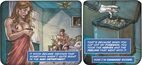 I’m trying to follow the logic here, and I think it’s that The Sundered have their birthright of limitless sexual pleasure ripped from them by bloodthirsty doctors, antisemitic stereotypes, and businessmen trying to make foreskin face cream, but as a compensation they’re held up as the standard by which all penises shall be judged? And yet, I was led to believe that women loathe the disgusting sight of a circumcised hog. So which is it?