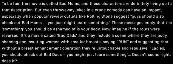 They did it! In discussing a scene from the movie Bad Moms, they actually did the classic “not so funny if you imagine a totally different thing, is it?” And look, I could be living in a liberal bubble, protected from the harsh reality of penis oppression out in Real America, but I can truthfully say that nobody I know has ever cited foreskin presence or absence as a determining factor in whether or not to pursue a sexual relationship with someone. So relax about your foreskin, guys. Women are much more likely to judge you on your height, bone structure, and hairline.