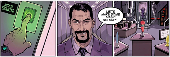 Sam Shield is the last guy we meet. Super Shielder and Elastic Enforcer don’t even get lines. This is what happens when you try to put too many characters in your crossover event or too many tops in Galaxy Gangbang Geeks Vol. 7. Someone inevitably gets the short end of the proverbial stick.