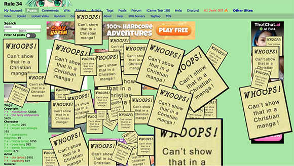 Anyway, the brief was doomed from the start. Giving your penis herald from beyond the edge of space the same name as one of the Fairly Oddparents is just bad SEO. There are nearly 300 results for “Cosmo” on Rule 34, and none of them feature the ONE Condoms mascot. I checked. I also learned that porn site sidebar ads are getting really creative with generative AI, though most of the innovation appears to be focused on putting arm-sized monster hogs on women with anime child faces.
